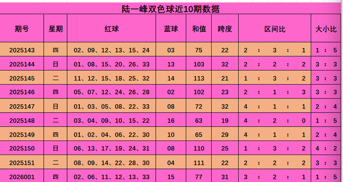 陆一峰双色球本期推荐: